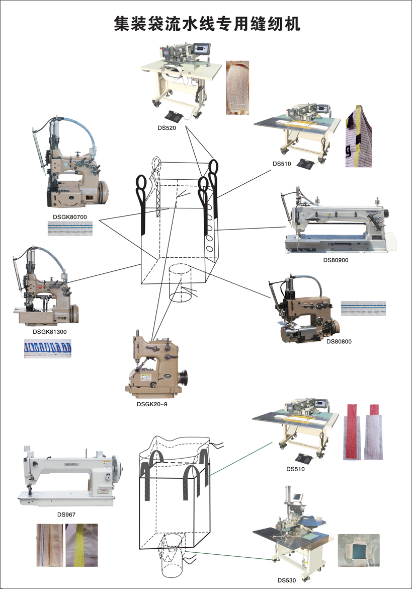 This machine adopts full-sealed oil pump,direct-drive computer,no belt,more environment-friendly;computer control,adjustable speed,needle positioning;computer screen display needle speed;equipped with Servo Motor,pneumatic pressure foot,pneumatic back seam,the pneumatic lifting foot can sew freely the excellent oil supply system and the advanced structure design make the high-speed operation of the upper canopy DS967DTL stable,and can basically meet the needs of the vast majority of domestic container bag production.